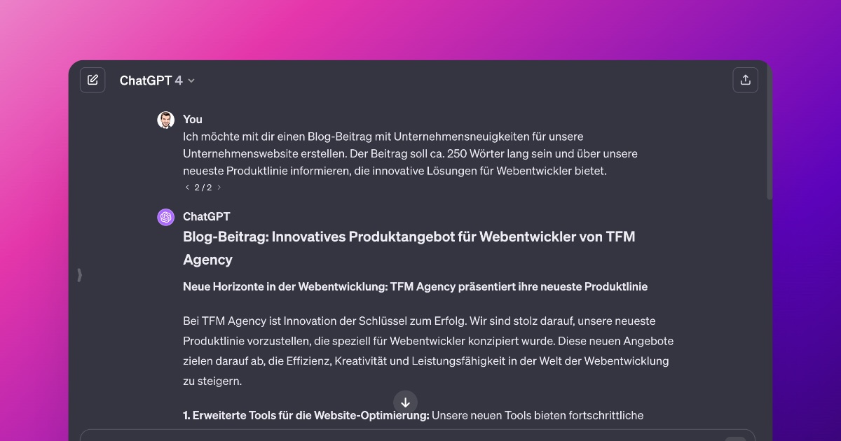 In diesem Beitrag zeigen wir dir, wie du mit ChatGPT einen solchen Beitrag für deine Unternehmenswebsite gestalten kannst.